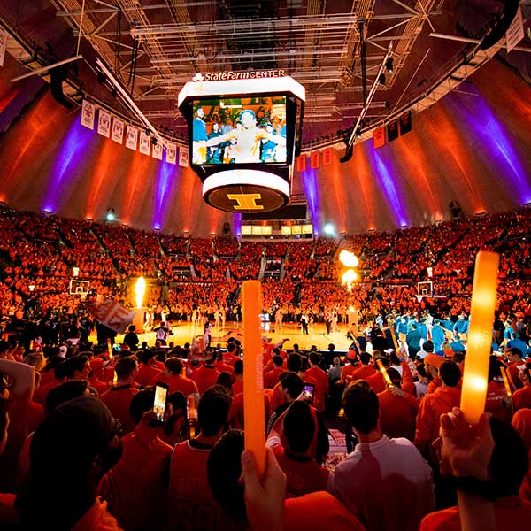 - State Farm Center is a 27,000-square foot arena with seating for 16,000