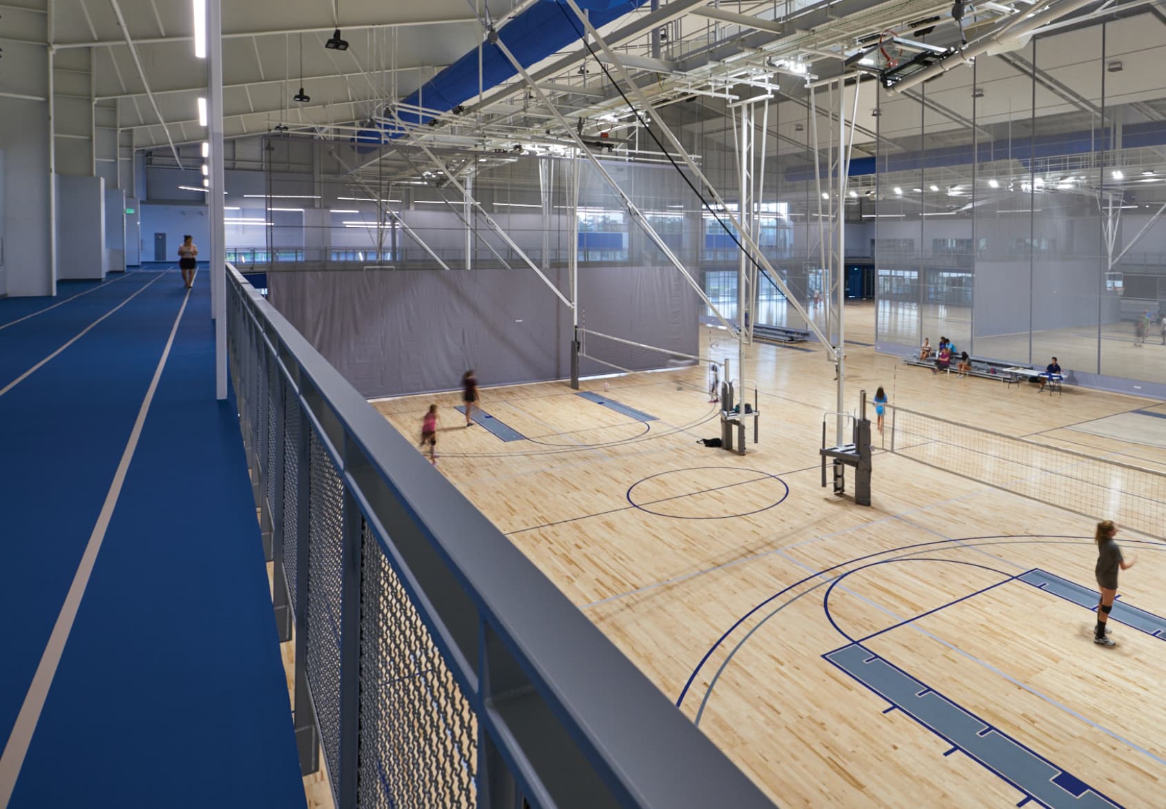 With bio-cushion maple hardwood floors, built-in tech access, and ceiling-mounted equipment, the courts are built for peak performance. An HD video wall, 12 LCD scoreboards, free Wi-Fi, and a full sound system enhance the tournament experience.